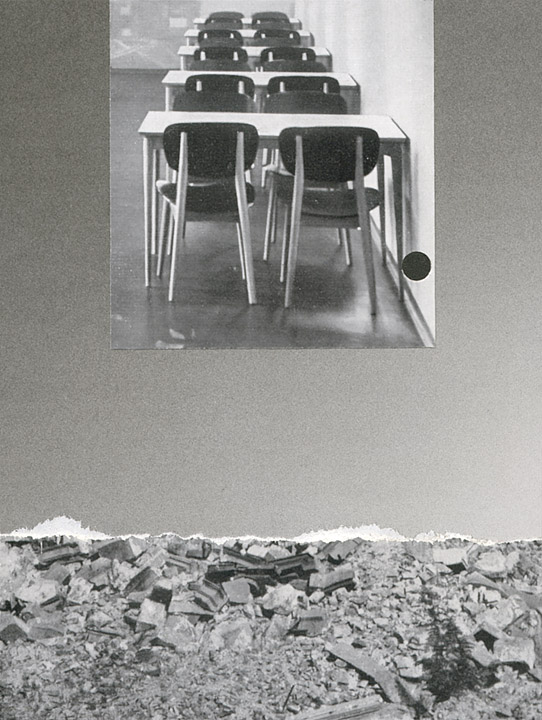 „Ihre Wärme war kurzlebig und gefährlich, wie die, die durch den Riss in einer Kraftwerksmauer entwich.“ 26. Oktober 2025 Collage m. Letraset ca. 11.5 x 11 cm |